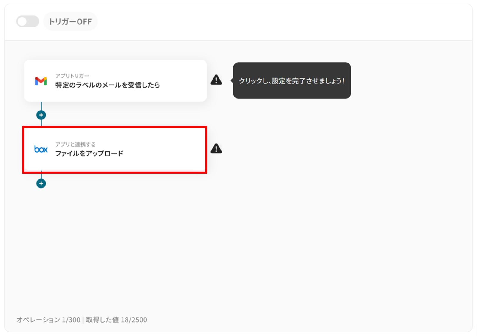 ここでは例として、「Gmailで受信したメールの添付ファイルを自動でBoxに格納する」フローの作成プロセスを簡単にご紹介します。