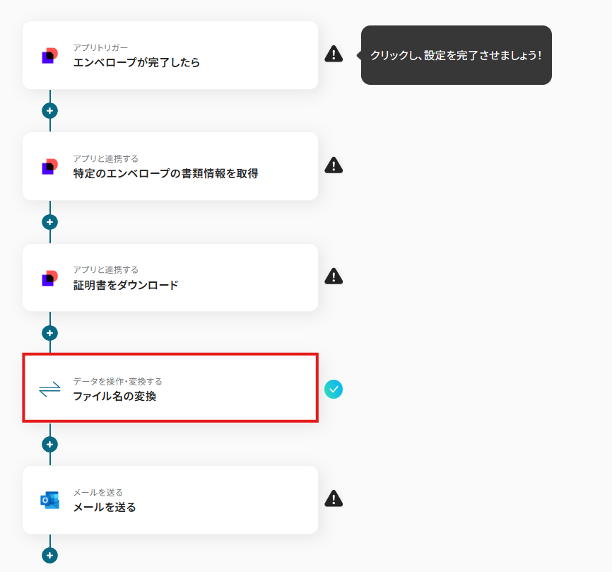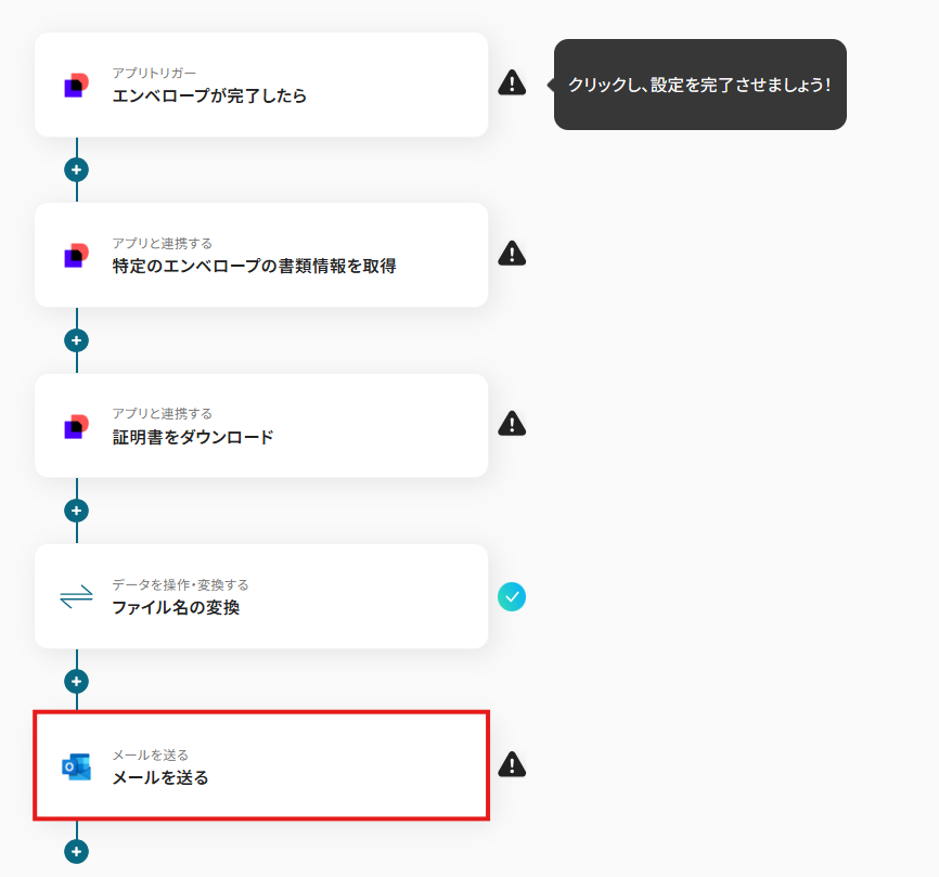 DocuSignで契約が完了したらOutlookを送信するフローです。