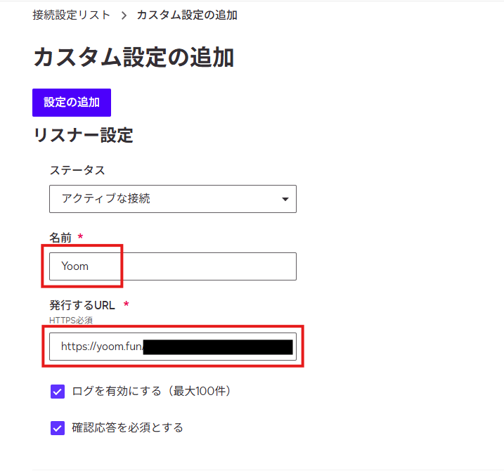 3.表示された画面で、以下画像の手順・注意事項に沿って、Webhookの設定をします。