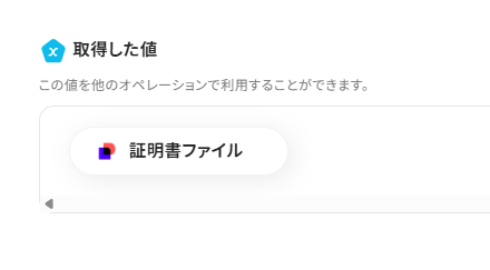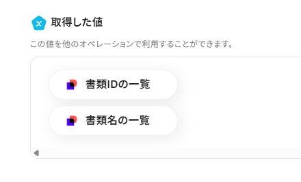 ※今回、DocuSignのアウトプット(取得した値)が空白のため、表示されていません。アウトプットに値が入っている場合は、表示されます。