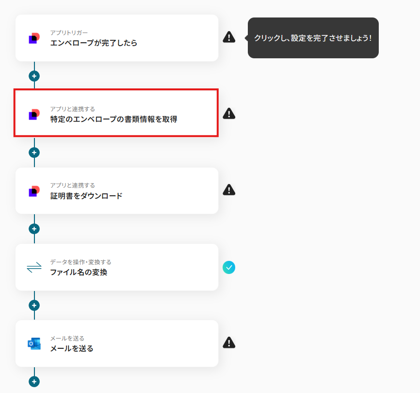 1.アプリと連携する「特定のエンベロープの書類情報を取得」をクリックしましょう。
