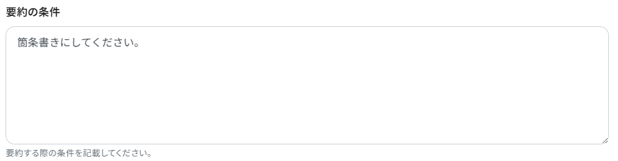 要約の条件には、例えば下記のように箇条書きの条件を指定するなど、お好きなように設定してください。