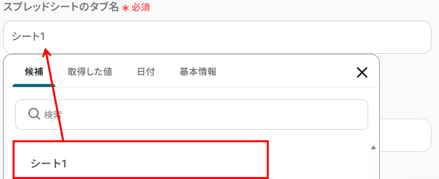 「スプレッドシートのタブ名」も同様に設定します。