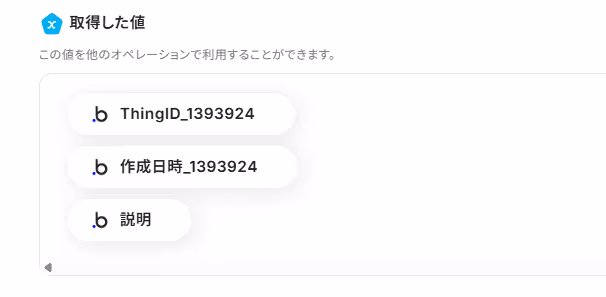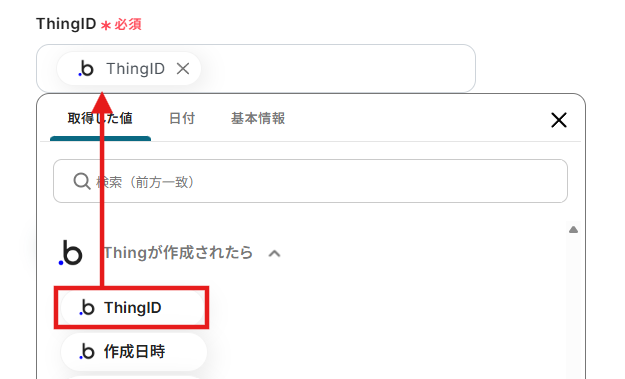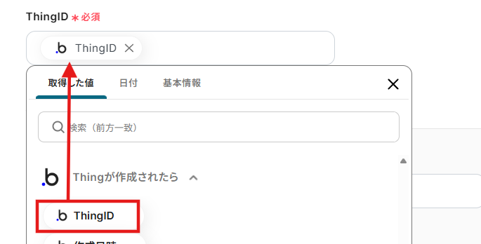 ThingIDは、Bubbleから取得した値の中から選択します。