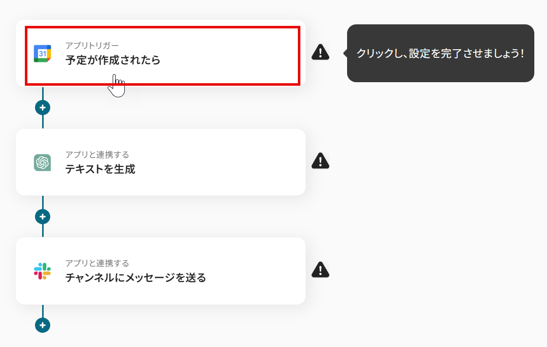 それではさっそく実際に、Google カレンダーに予定が作成された際に、その説明文をChatGPTで要約してSlackで通知するフローを解説していきます!