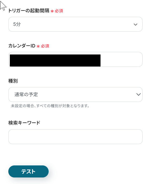 カレンダーIDのフィールドをクリックし、連携するカレンダーIDを選択してください。