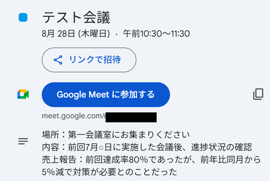 Google カレンダーに追加された予定の詳細をチームに共有する際、説明文が長いと内容を把握しづらく、要約して共有する手間が発生していませんか。
