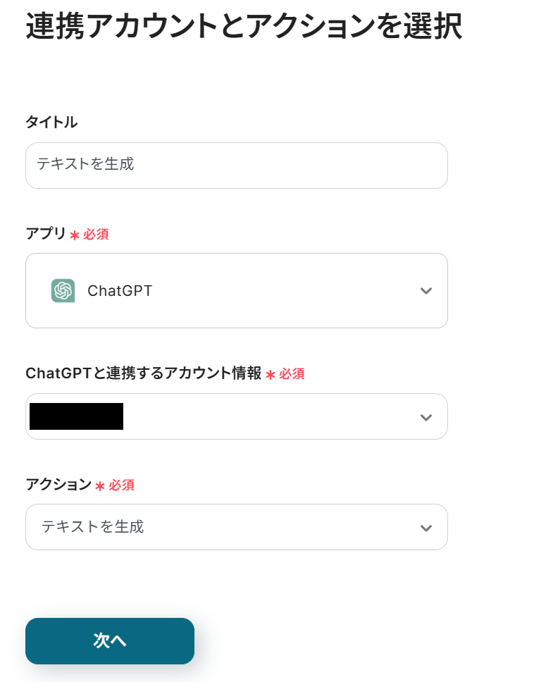 ※ChatGPT(OpenAI)を使ったアクションを動かすには、OpenAIのAPI有料プランに契約しておく必要があります。