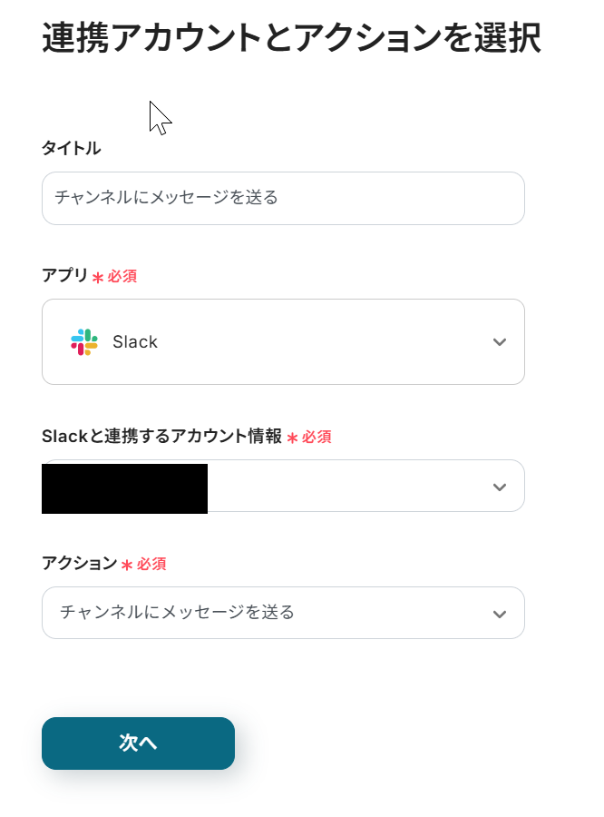 フィールドをクリックし、候補の中からチャンネルを選択してください。