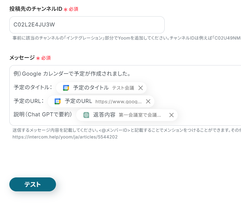 ・Google カレンダー、Chat GPT、SlackのそれぞれとYoomを連携してください。