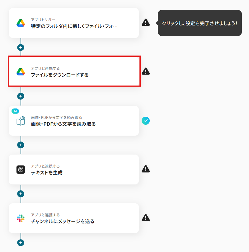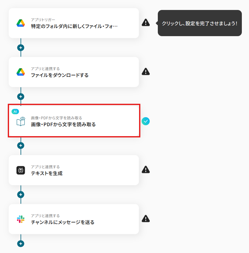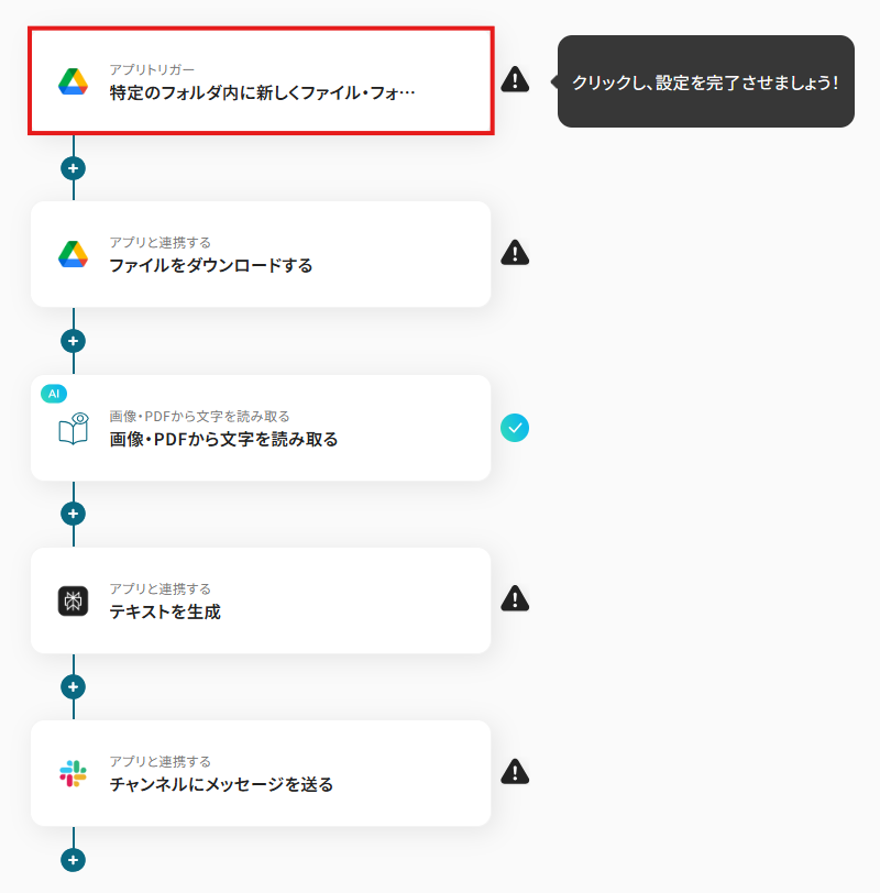 それではここから代表的な例として、Google Driveにアップロードされたファイルを自動でOCR処理し、そのテキストをPerplexityで要約、結果をSlackに通知するフローを解説していきます!