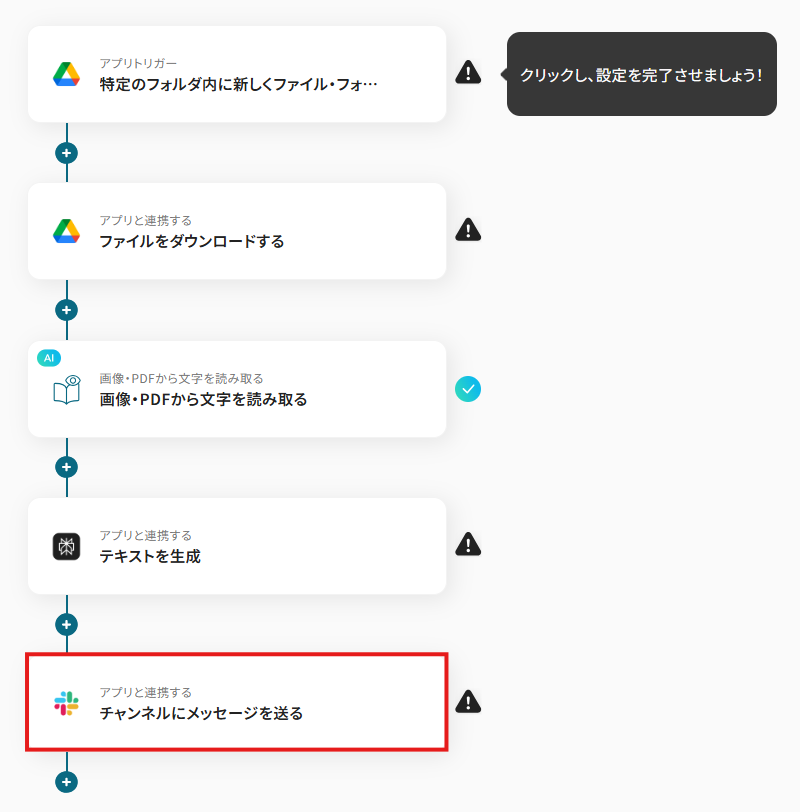 OCRで抽出したテキストをPerplexityで要約・分析し、その結果をSlackやGoogle Chatといったビジネスチャットツールに自動で通知することができます。