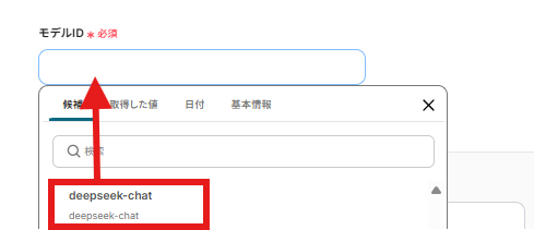 テスト成功すると以下の取得した値に、DeepSeekからの値が表示されます。