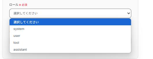 ロールは以下から選択しましょう。今回はassistantを選択しました。