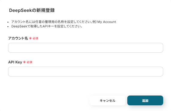 ・Google スプレッドシート、DeepSeekのそれぞれとYoomを連携させてください。