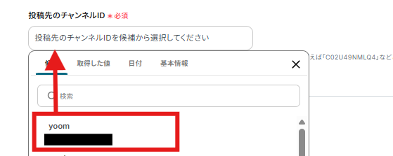 投稿先のチャンネルは、以下の画面のように候補から選択しましょう。