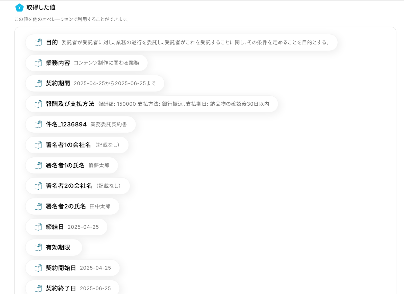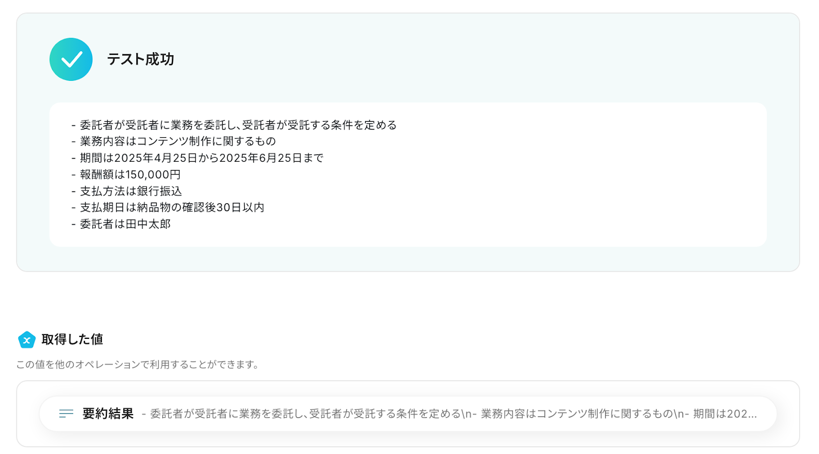 契約書がGmailで届くたびに、OCR技術で内容を抽出し、その後AIが要約を行います。これにより、契約書の内容を迅速に把握し、必要な情報をすぐに確認できるようになります。