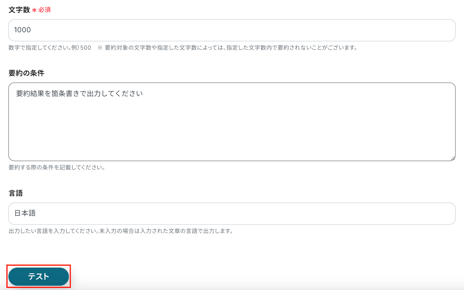 入力が完了したら、テストをします。