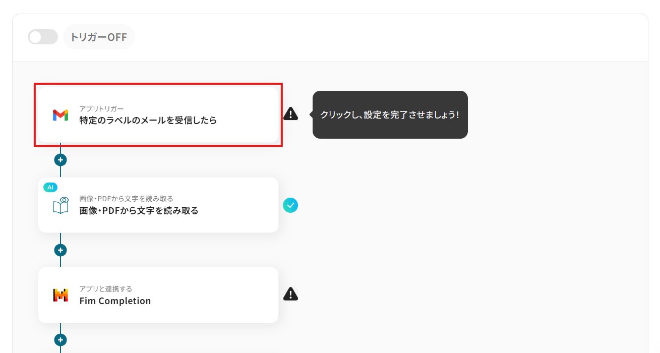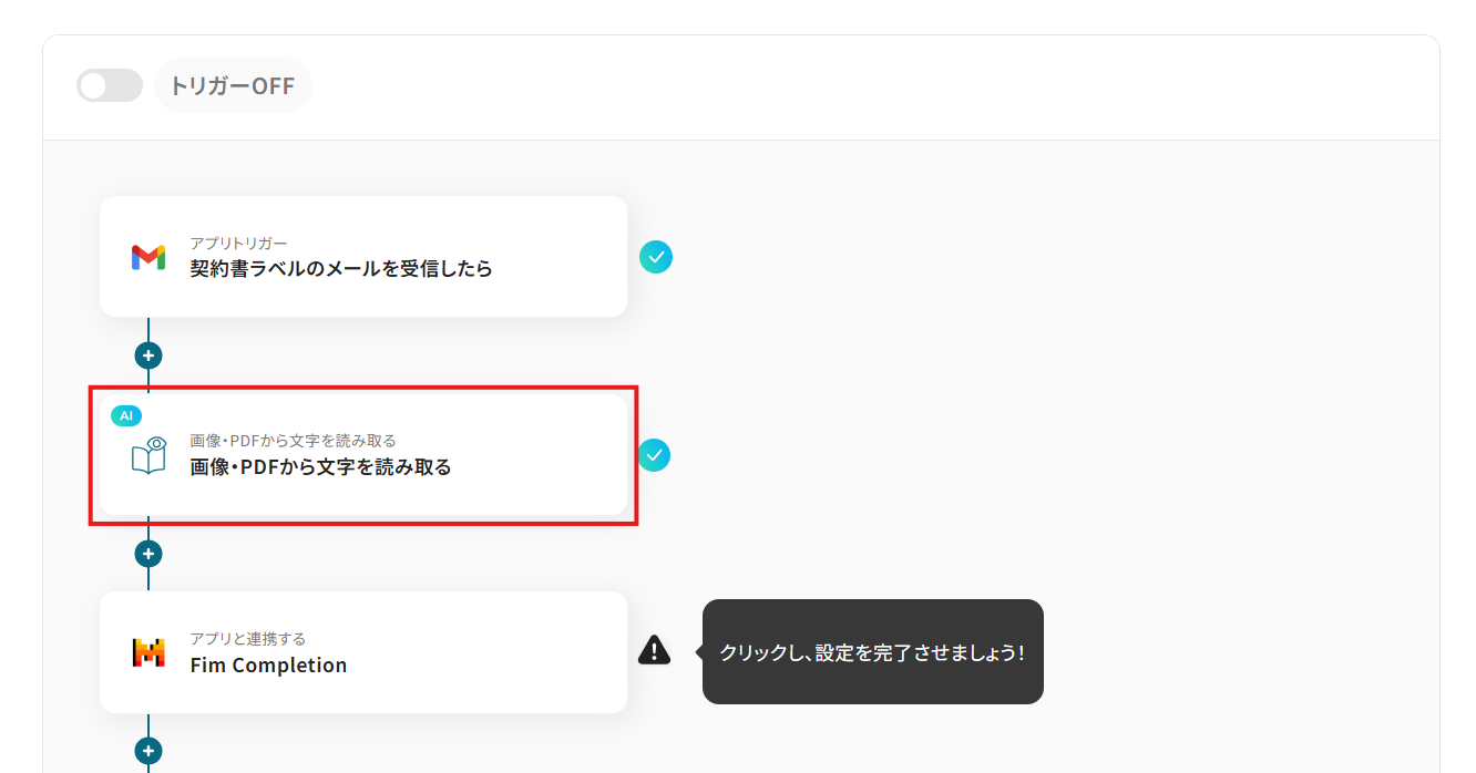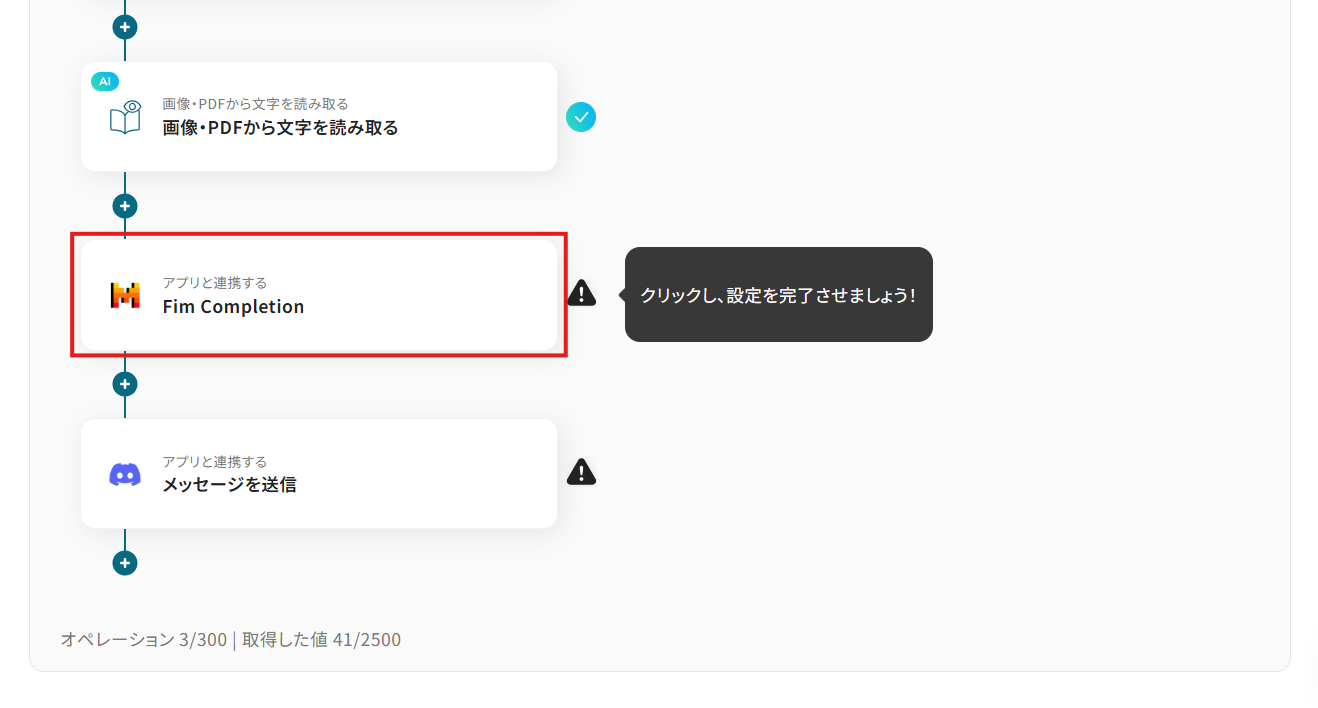 フロー画面に戻り、「全ての設定が完了しました!」と表示されていればフローの設定は完了です。