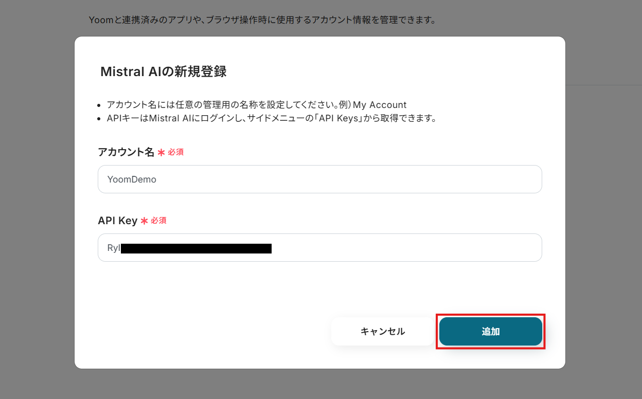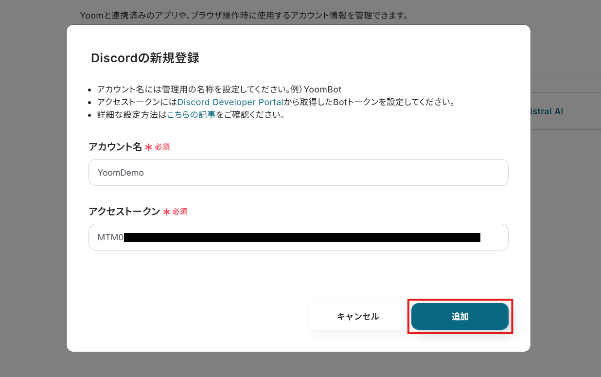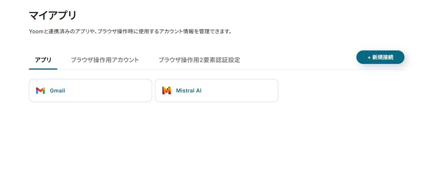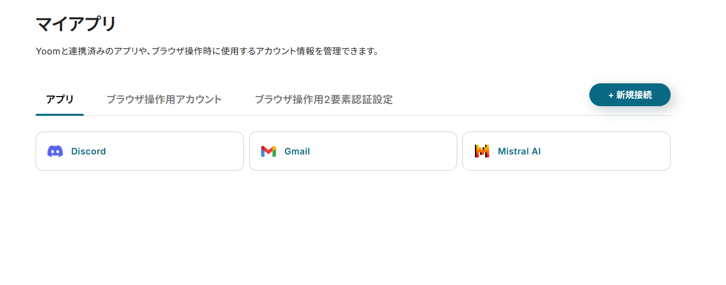 ・Slack、Mistral AI、DiscordのそれぞれとYoomを連携してください。