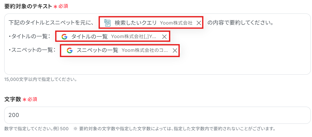 文字数はご自身の用途に合わせて変更してください。