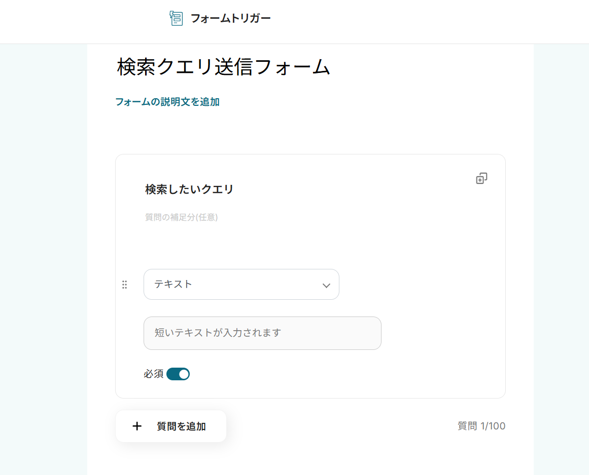 フォームトリガーとGoogle 検索、AI要約、Slackのアクション設定