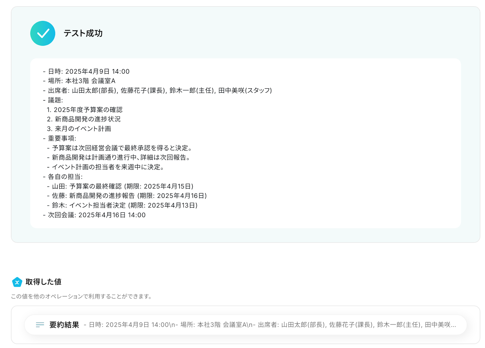 この記事では、「会議録の内容をAIで自動要約する方法」について、プログラミング不要で実現できる具体的な手順をご紹介しました。