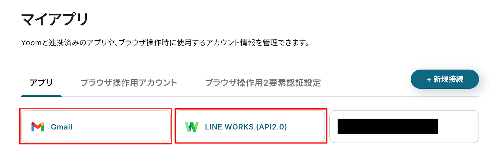 GmailとLINE WORKSをYoomに接続するためのマイアプリ登録を行いましょう。