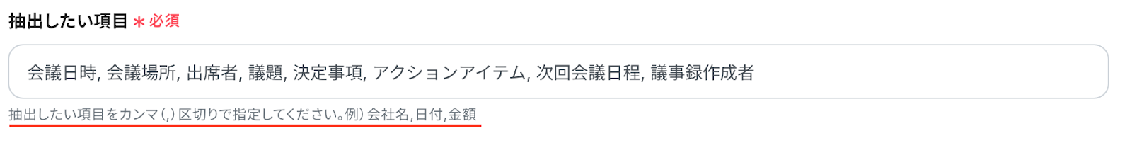 続いて、詳細設定をしましょう。ここでは、先ほど抽出した項目を要約したり、プロンプトをカスタマイズすることが可能です。