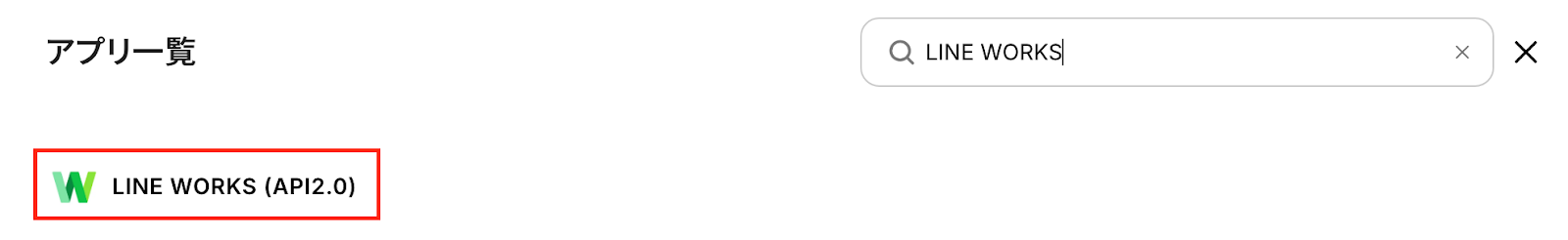 検索窓にLINE WORKSと検索し、LINE WORKS (API2.0)を選択してください。