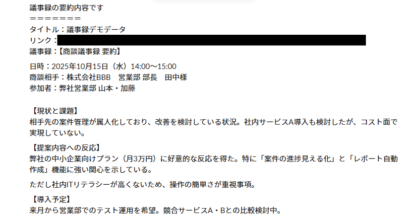 これにより、会議後のフォローアップが迅速化され、担当者は次のアクションにすぐに取り掛かることが可能になり、組織全体の意思決定スピードも向上するでしょう!