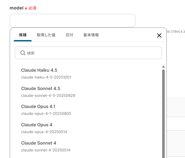 modelは以下のように表示される候補から任意のものを選択しましょう。