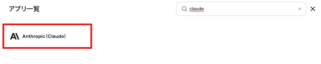 検索窓にAnthropic(Claude)を入力し表示される候補をクリックします。