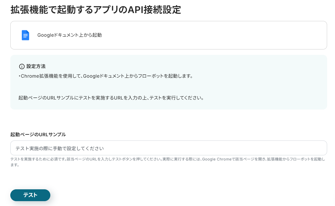 Yoomの拡張機能を用い、Googleドキュメントをトリガーにするための設定を行います。