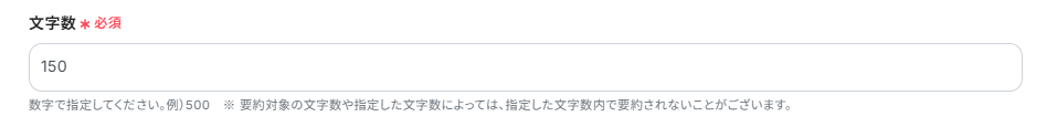 要約対象のテキストのテキストを設定例を参考に入力します。