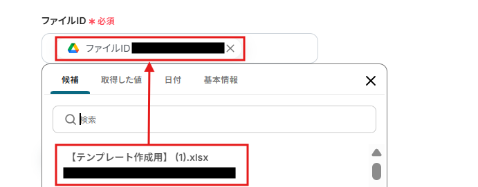 ファイルIDを候補から選択してください。 ここでは、文字を読み取りたいファイルを選びましょう。