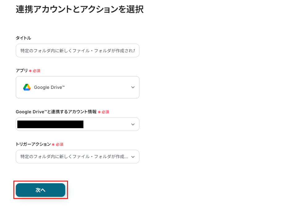 指定したフォルダ内にフォルダ・ファイルが作成されたら、フローが起動します。