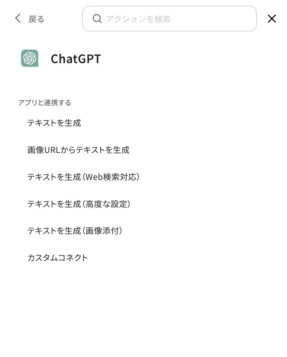 その後、表示されたアクション一覧から「テキストを生成」などの要約アクションを選択し、プロンプトや出力条件を設定することで、ChatGPTなど他のAIモデルでも同様に要約処理を実行できます。