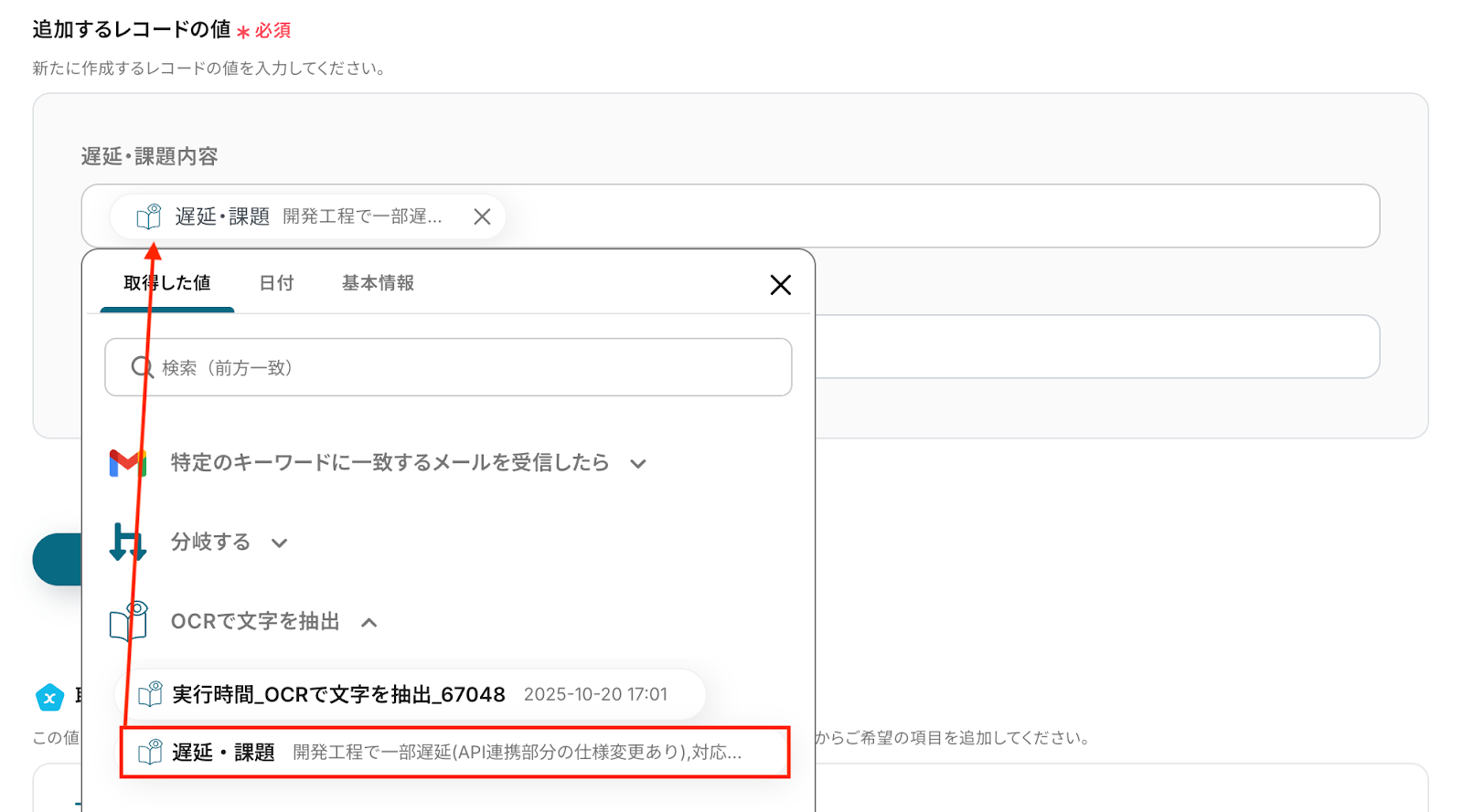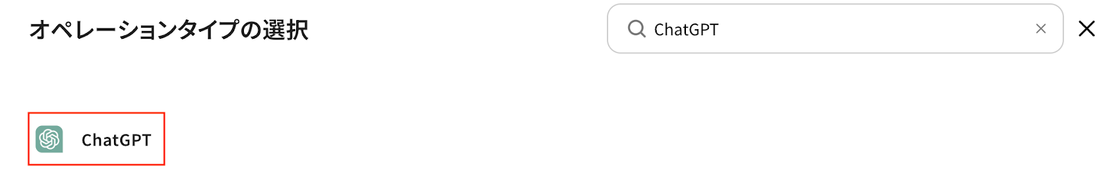 フローボットの「OCRで文字を抽出」以下の+をクリックし、連携アプリからChatGPTなど使用したいAIアプリ等を検索・選択します。