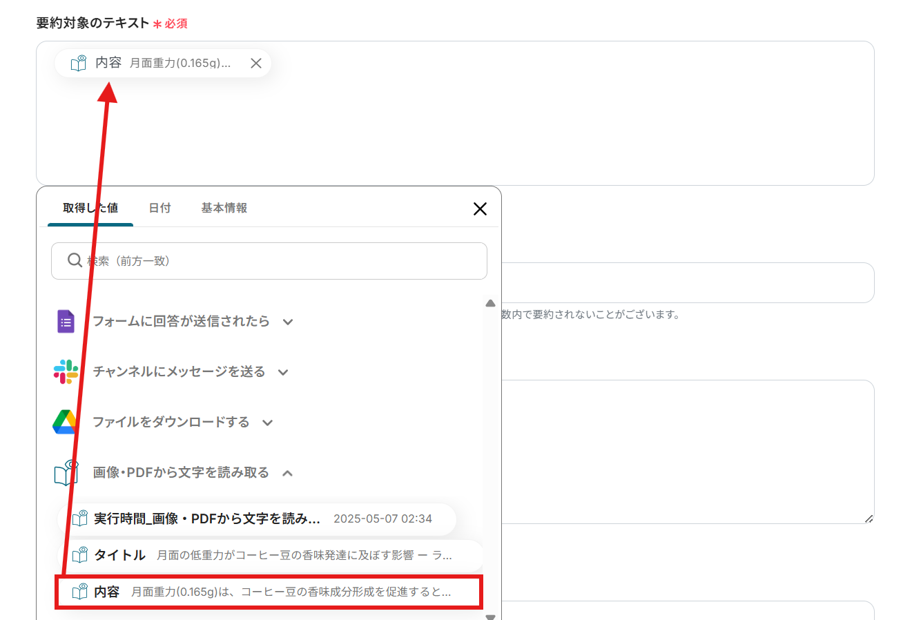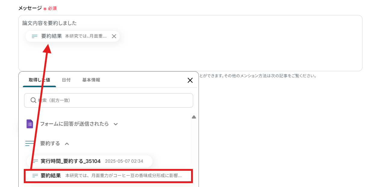 文章の要約機能を活用すれば、フォームで受け取った論文ファイルをOCRで読み取り、自動的に要約を作成し、チャットツールへの通知やメール送信、データベースへの記録まで一括で行うことが可能です。