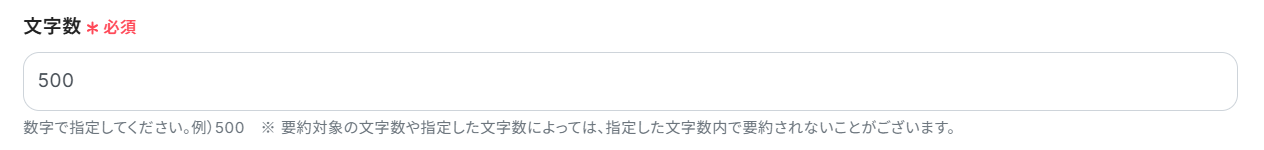 文字数:数字で入力します。今回はデフォルトのままにしておきます。