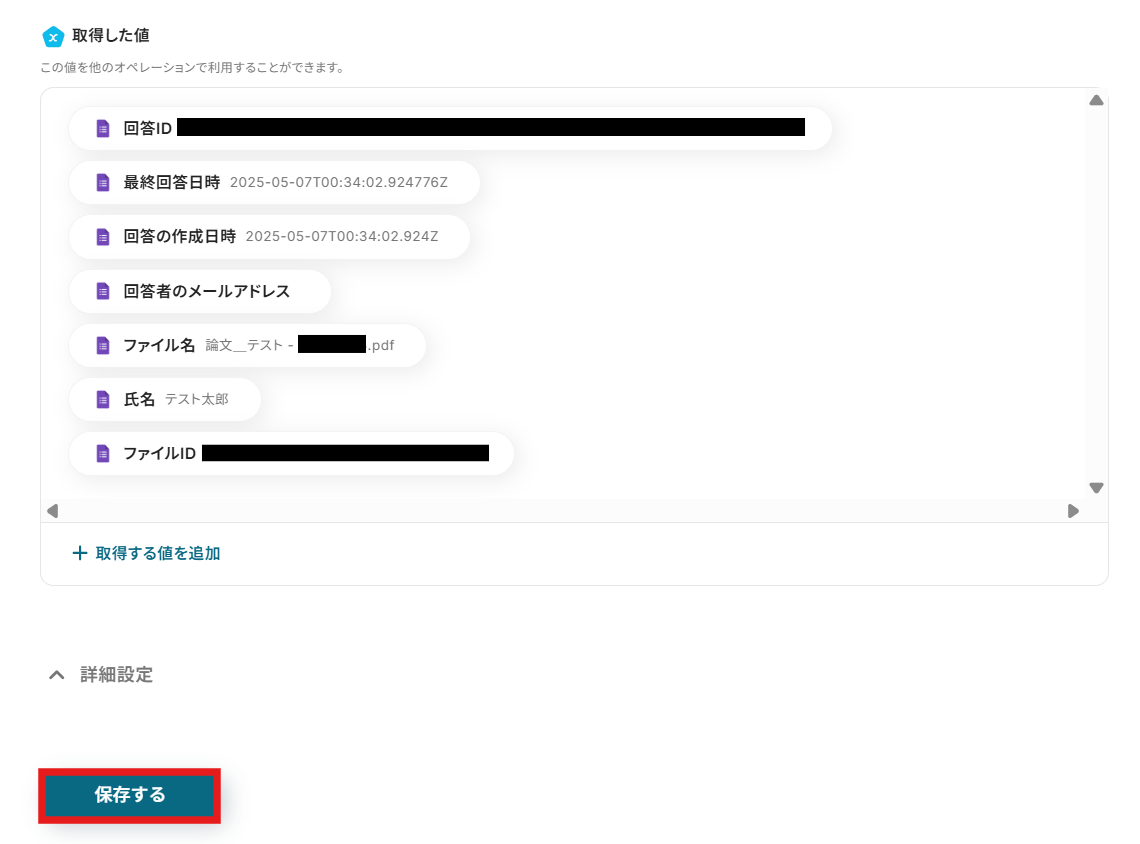 ・Googleフォームをトリガーとして使用した際の回答内容を取得する方法は下記を参照ください。