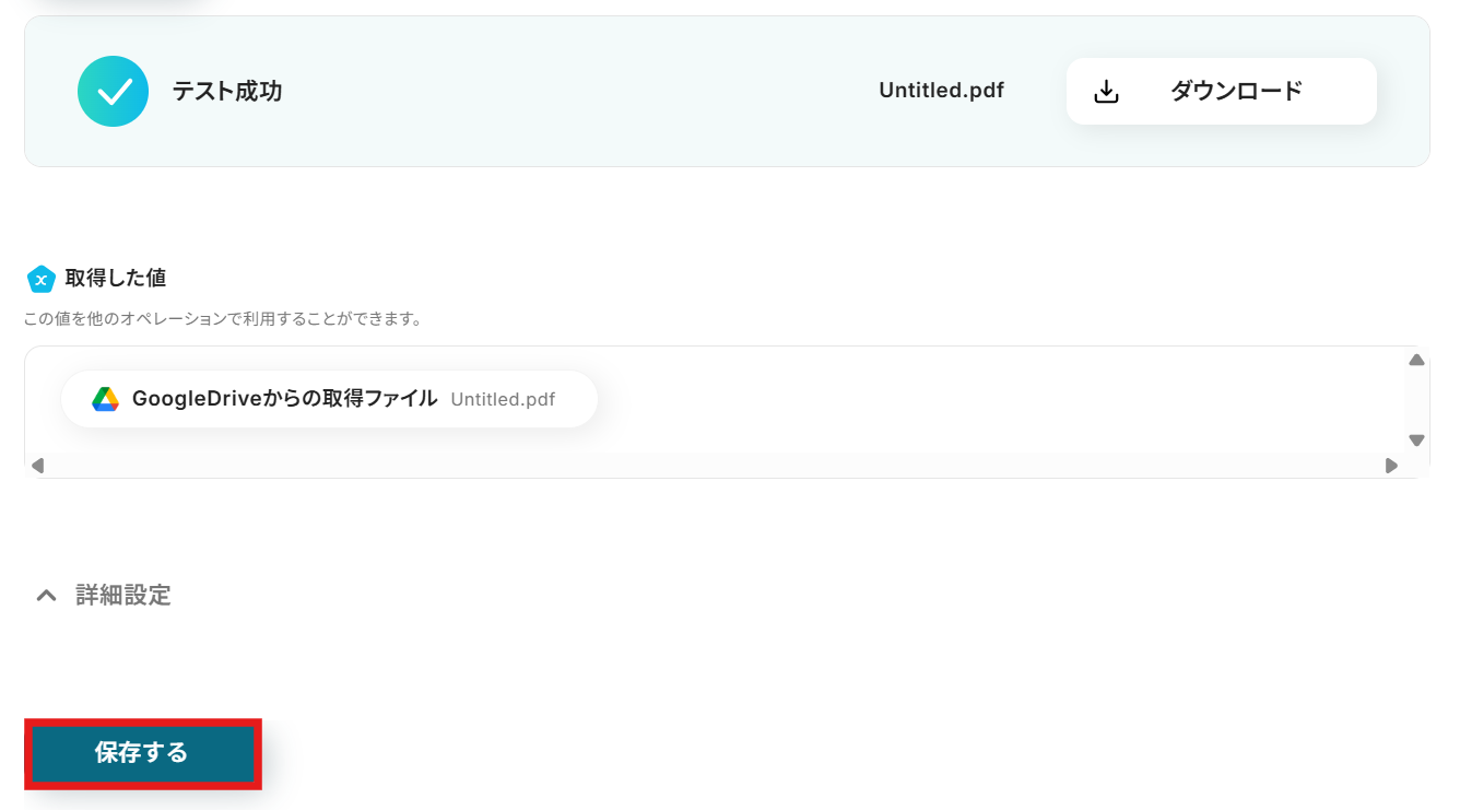 問題なく「テスト成功」と表示されれば、最後に「保存する」をクリックします。