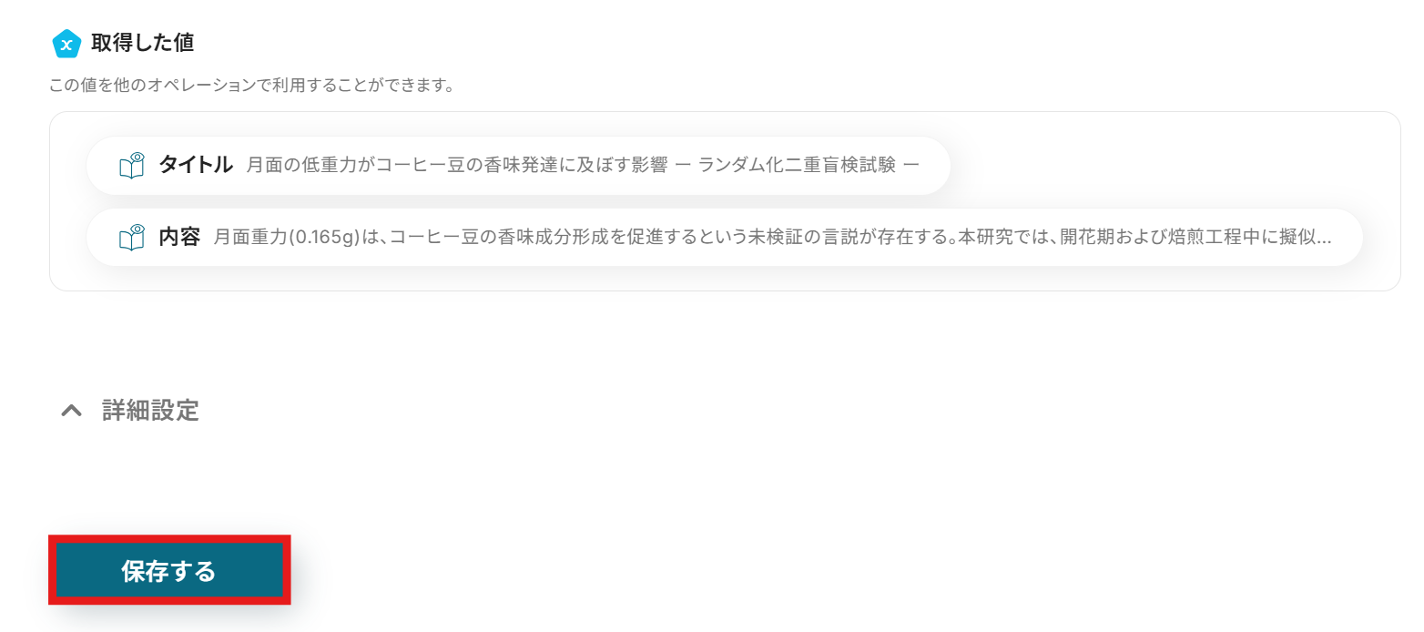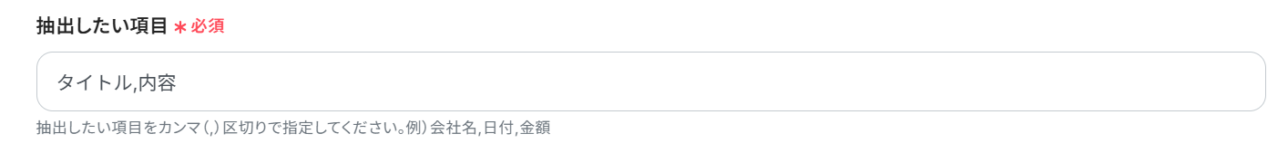 抽出したい項目:デフォルトではタイトルと内容を抽出するように設定されています。