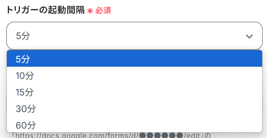 ・トリガーは5分、10分、15分、30分、60分の間隔で起動間隔を選択できます。