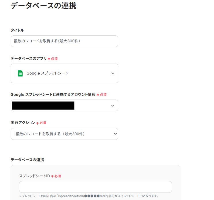 ステップ4:Google スプレッドシートでレコードを取得するアクションを設定