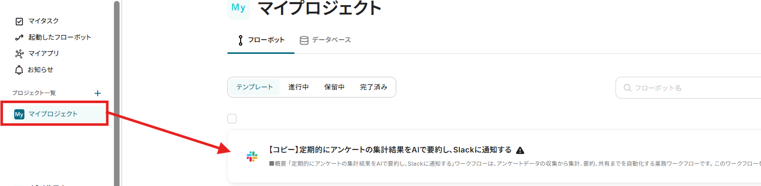 また、コピーしたテンプレートはマイプロジェクトに保存されているので、マイプロジェクトからも開くことができます。