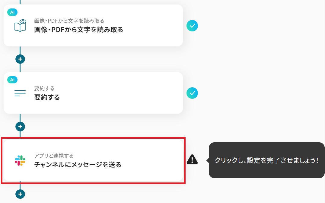 このフローを使えば、フォームに寄せられた意見や問い合わせの要点を、担当者がSlackですぐに確認できるようになります。