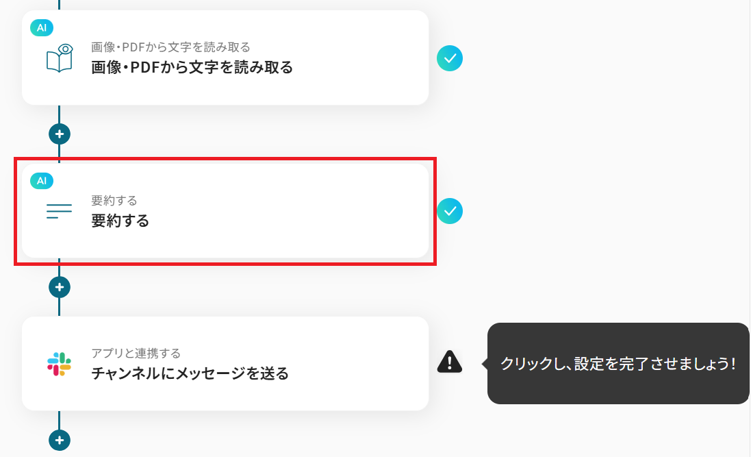 もう1段階AIオペレーションを挟みます。「要約する」をクリック。