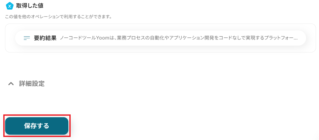 成功したら保存してください。AIによる要約結果を取得できました!